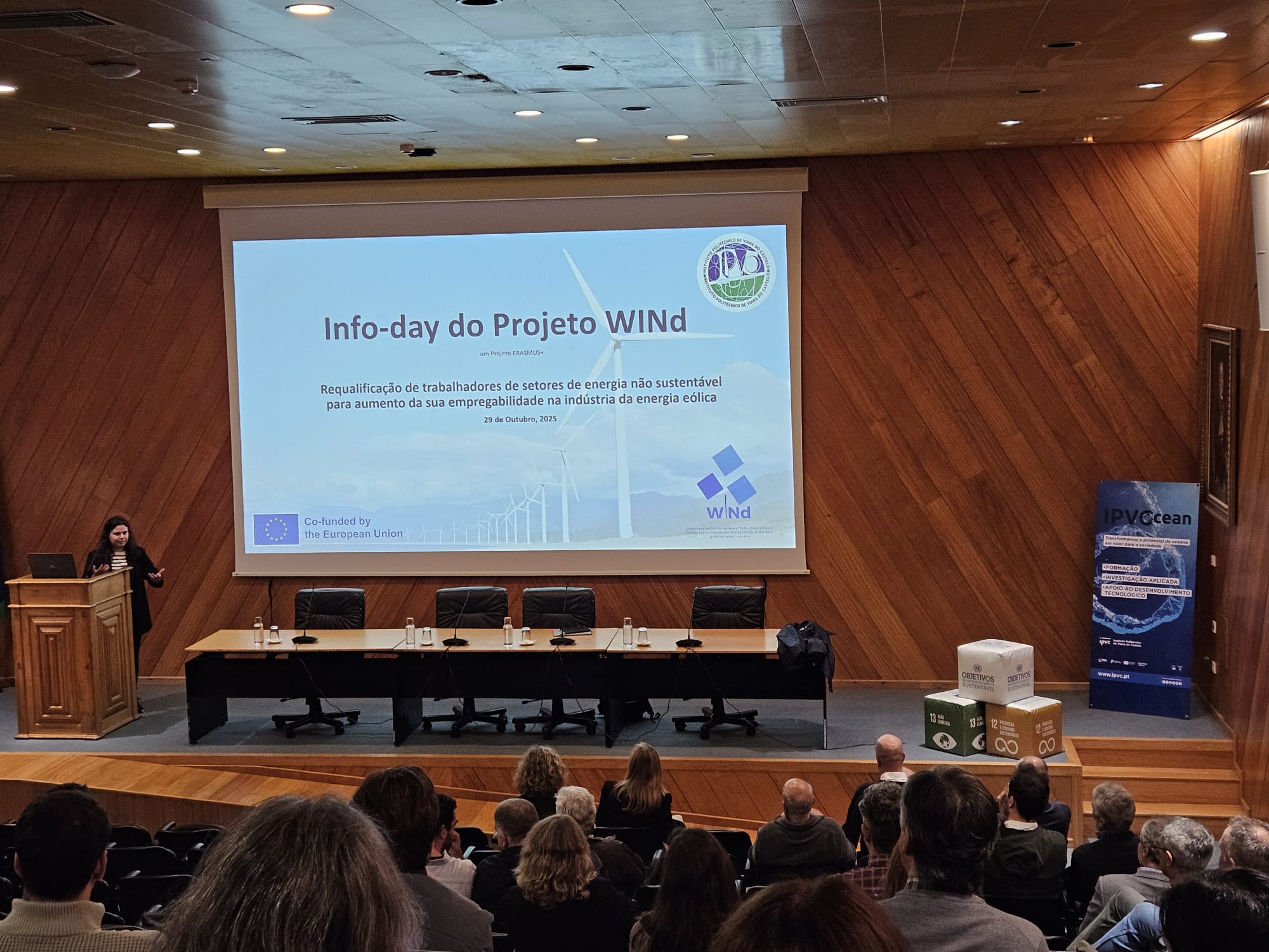 On 29 October 2025, IPVC hosted its National Info Day at the Auditório Francisco Sampaio in Viana do Castelo, as part of the IPVC Ocean events. The session highlighted the growing importance of the Blue Economy and introduced participants to the WINd project, its progress, and its educational tools.