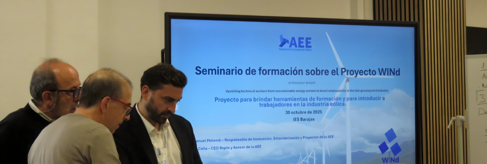 On 30 October 2025, the Asociación Empresarial Eólica (AEE) hosted a WINd Training Seminar at the Entrepreneurship Room of IES Barajas, in Madrid, Spain. The session introduced participants to the WINd curriculum, the Massive Open Online Course (MOOC), and the WINd mobile application, highlighting their role in supporting flexible and industry-relevant learning. The seminar was led …