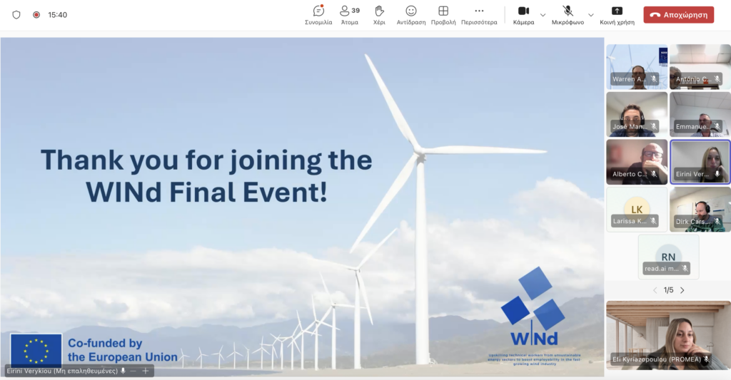 On 4 December 2025, the WINd final Virtual EU Conference successfully brought together stakeholders, project partners, and wind energy professionals from across Europe to mark the conclusion of the WINd project.